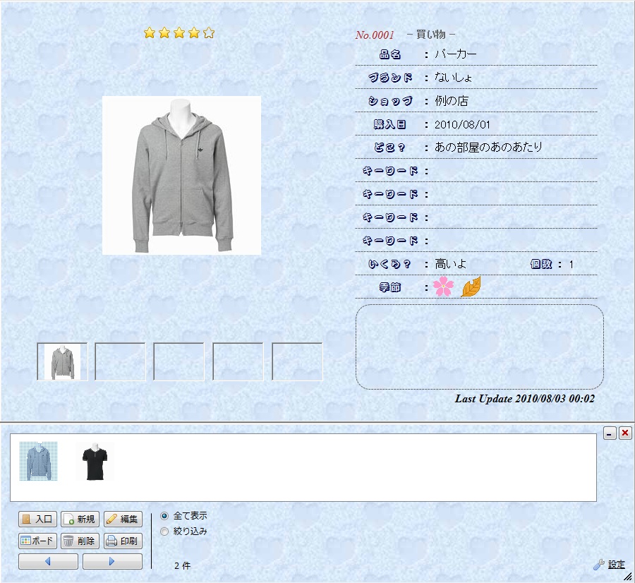 買った物を整理する為のカード型データベース